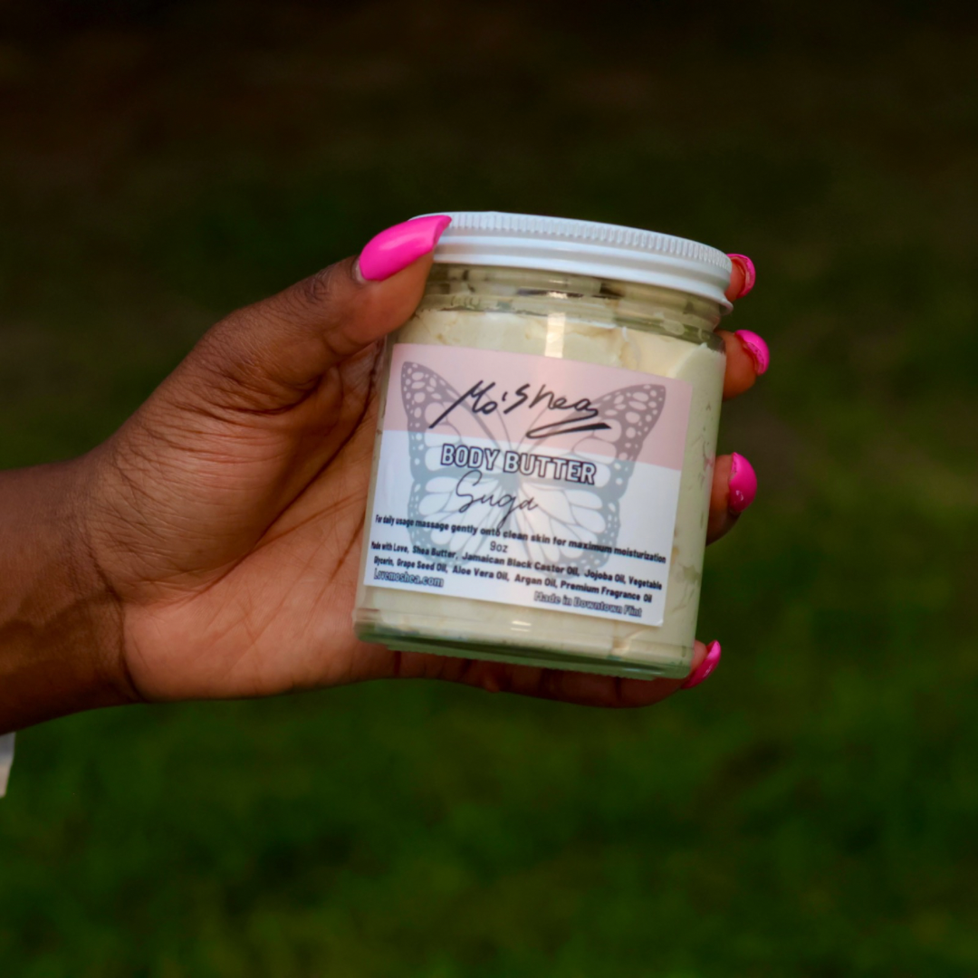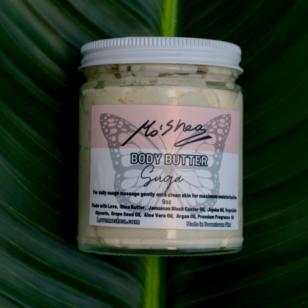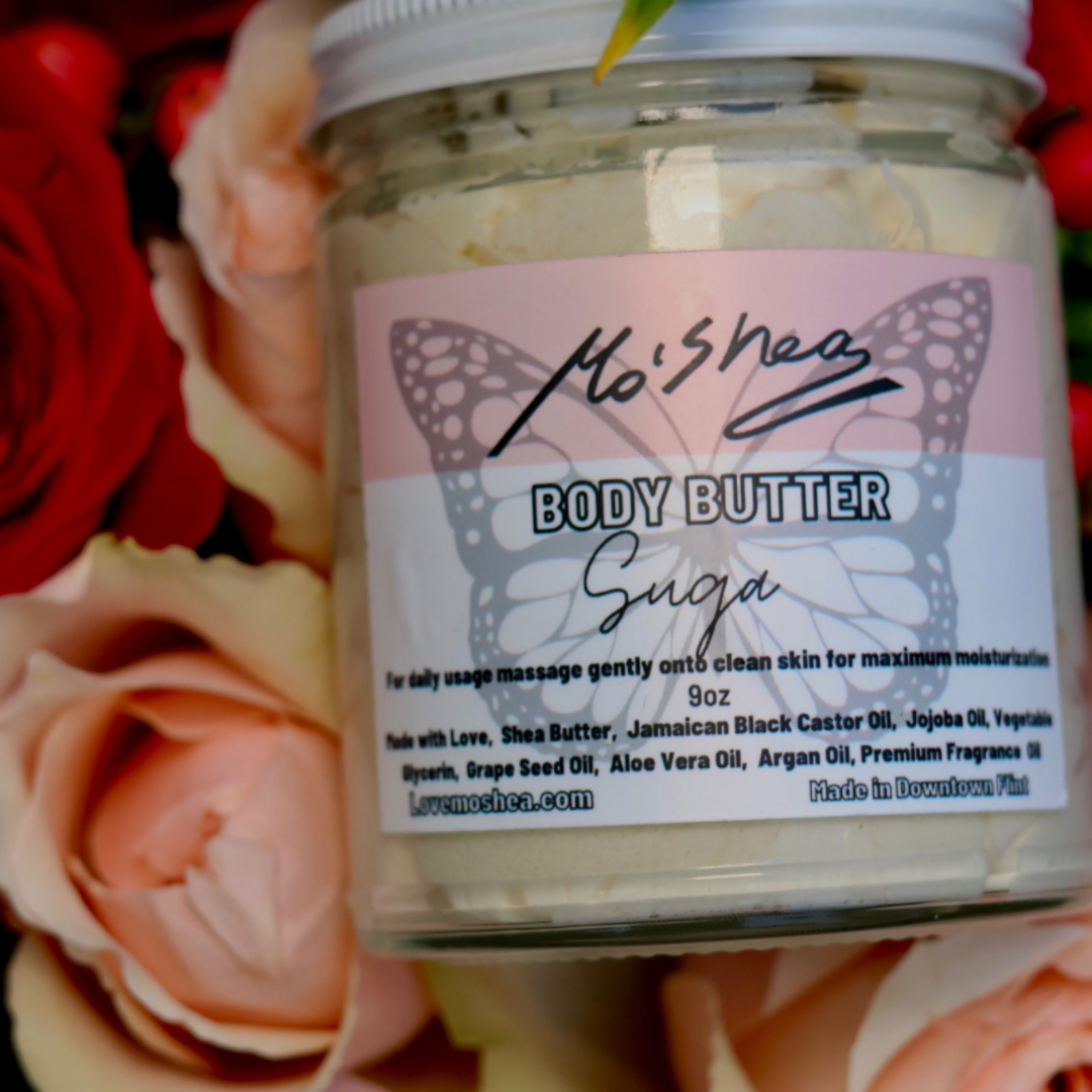 Suga brings back sweet memories with its blend of vanilla, caramel, strawberry, and licorice. Massage butter gently into clean skin to experience The Butterfly Effect.